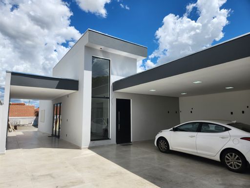 Se você procura conforto, sofisticação e um espaço perfeito para receber amigos e família, esta casa é a escolha ideal. Com um projeto arquitetônico funcional e acabamentos de alto padrão, o imóvel se destaca pela amplitude e modernidade. Destaques do Imóvel: Área Social: Sala ampla com pé-direito duplo, proporcionando uma sensação de liberdade, ventilação e muita luz natural. O piso em porcelanato de grandes dimensões percorre toda a casa, garantindo elegância e facilidade de manutenção. Cozinha e Copa: Espaço integrado com bancadas em granito preto São Gabriel, cuba em aço inox e revestimento retrô (estilo metrô white), unindo o clássico ao moderno. Área Íntima: Corredor privativo que dá acesso aos dormitórios. Quartos espaçosos, com janelas em alumínio preto (blackout) e pré-instalação para ar-condicionado. Banheiros de Revista: Acabamento diferenciado com revestimentos em tons de verde esmeralda na área do banho, nichos embutidos, pias esculpidas e louças de primeira linha. Espaço Gourmet & Lazer: Um verdadeiro refúgio particular! Amplo quintal com área gramada, ducha externa e uma área gourmet completa com churrasqueira moderna (coifa preta), bancada de apoio e pia, ideal para os seus momentos de descontração. Outros diferenciais: Iluminação toda em LED (painéis de sobrepor modernos). Portas internas em madeira de excelente qualidade. Esquadrias em alumínio preto, conferindo um toque contemporâneo. Pintura externa texturizada, garantindo maior durabilidade e estética. Agende sua visita e venha se encantar com cada detalhe deste imóvel que une praticidade e bem-estar!