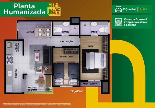 Imagine morar em um apartamento moderno de 2 dormitórios, sendo 1 suíte, com varanda integrada à sala, ambientes amplos e ventilação natural, projetado para o seu bem-estar e o da sua família. Com metragem entre 57 m² e 58 m², cada unidade oferece praticidade com 1 vaga de garagem, pontos para ar-condicionado e infraestrutura completa que facilita o seu dia-a-dia.