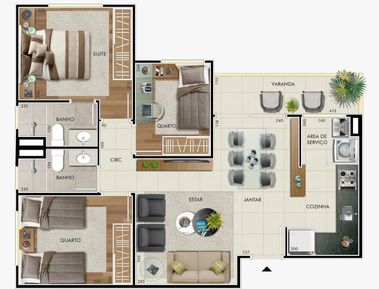 Além de oferecer aptos com 2 e 3 dormitórios com suíte, varanda e padrão de acabamento com piso laminado e porcelanato